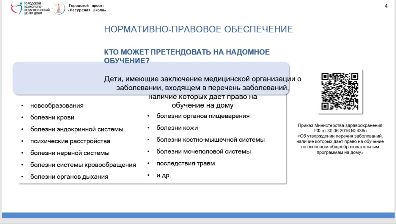 Согласно российскому законодательству, каждый ребенок имеет право на получение образования – и государство обязуется ему в этом помочь. Для родителей особенных детей этот вопрос встает острее: как быть, если ребенок не может посещать школу? Как оформить обучение ребенка на дому? Какие медицинские документы необходимы для предоставления в образовательную организацию? Каков алгоритм действий школы по предоставлению надомного обучения и дальнейшей работе с обучающимся.